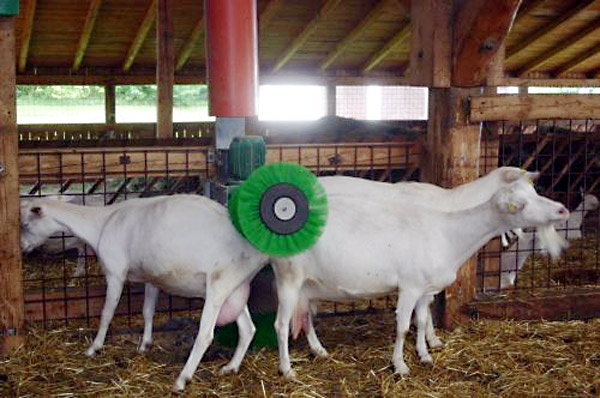 KomfortelementeZur Unterstützung der Körperpflege können rotierende Bürsten angeboten werden, die die Ziegen sehr gern annehmen.