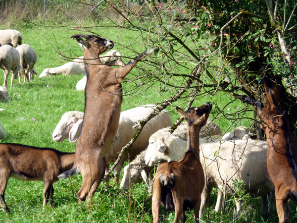 Wenn Ziegen die Möglichkeit haben, fressen sie Bäume und Sträucher. Um an Laub zu kommen, stellen sie sich auf die Hinterbeine. Dieses Verhalten wird „fakultative Bipedie" genannt. >> Weiter >> |